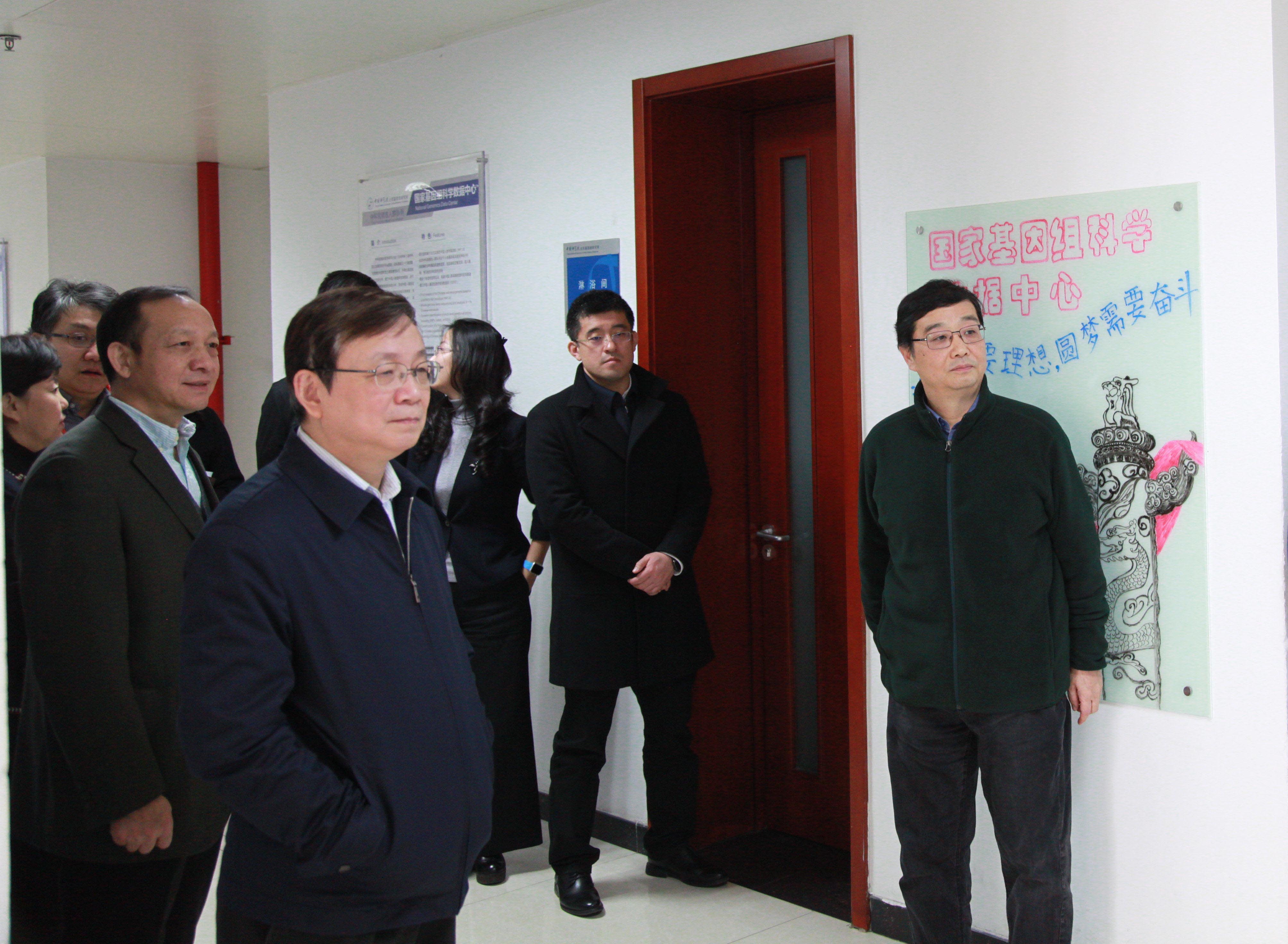 侯建國聽取了北京基因組所所長薛勇彪對研究所“一三五”規劃落實情況與國家生物信息中心建設情況的匯報,實地考察了生命與健康大數據中心、中科院基因組科學與信息重點實驗室及中科院精準基因組醫學重點實驗室,與科研人員就有關項目進展與關鍵問題進行了交流,勉勵科研人員集中優勢資源,加強統籌謀劃,管好用好生命科學大數據。