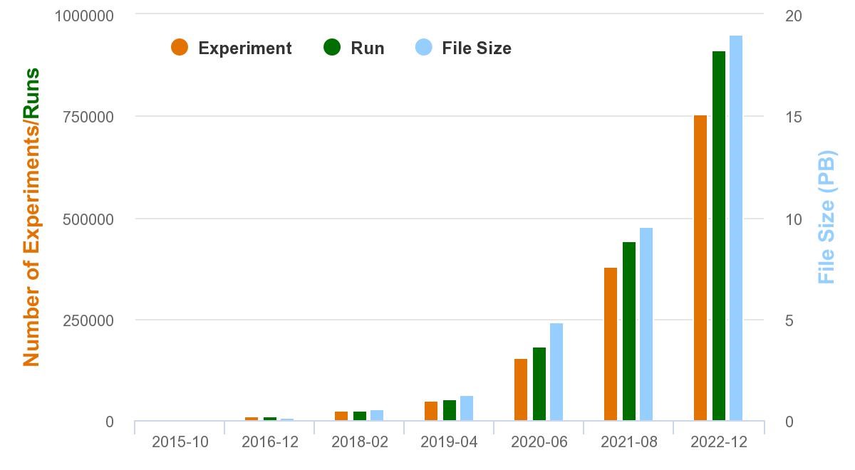 CNCB-NGDC匯聚全球數據,免費為國內外用戶提供一站式多組學數據匯交和存儲服務,發布的數據編號被Springer Nature、Elsevier、Wiley、Taylor & Francis、Cell等全球主要出版集團認可。截至2022年12月20日,組學原始數據管理體系(GSA Family)已支持各類科技項目10900多個,匯交數據量近19PB,來自754家單位3500名用戶,相關數據已發表在457種國內外期刊的近2000篇文章。2022年7月起CNCB-NGDC承擔國家人類遺傳資源信息管理備份平臺運行維護任務,實現國家人類遺傳資源信息一體化管理、備份、發布與共享。新冠病毒信息庫(RCoV19)不斷更新,目前已收錄新冠病毒序列超1400萬條,為全球181個國家/地區240多萬名訪客提供數據服務,累計數據下載達100多億條,在新冠病毒演化分析、監測、溯源等方面發揮了重要作用,入選2022年世界互聯網領先科技成果手冊。