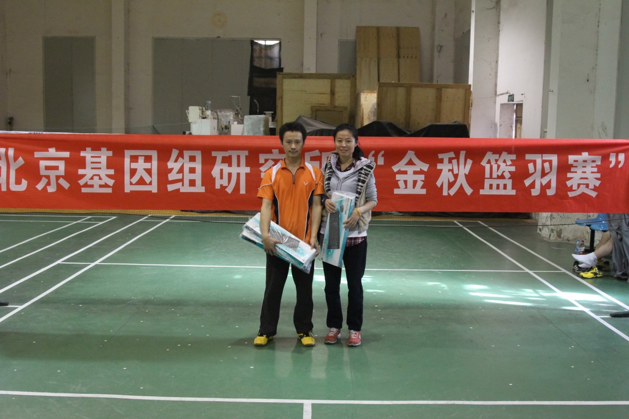 2014年10月26日上午,基因組所“金秋籃羽賽”的羽毛球比賽部分在中國科學院半導體研究所羽毛球館拉開序幕。比賽從上午九點半開始,一直持續到下午兩點結束。經過四個半小時的激烈角逐,邵建明獲得男子單打第一名,王冬獲得女子單打第一名,邵建明和李艷明獲得混雙比賽第一名。至此,基因組所2014年度“金秋籃羽賽”圓滿落幕。