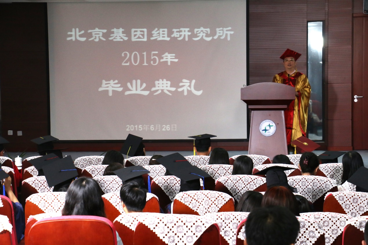 6月26日上午,中國科學院北京基因組研究所2015年畢業典禮在一樓報告廳隆重舉行。所領導、研究生導師、職能部門負責人、部分畢業生家長和全體畢業生共同參加了典禮,典禮由張德興副所長主持。