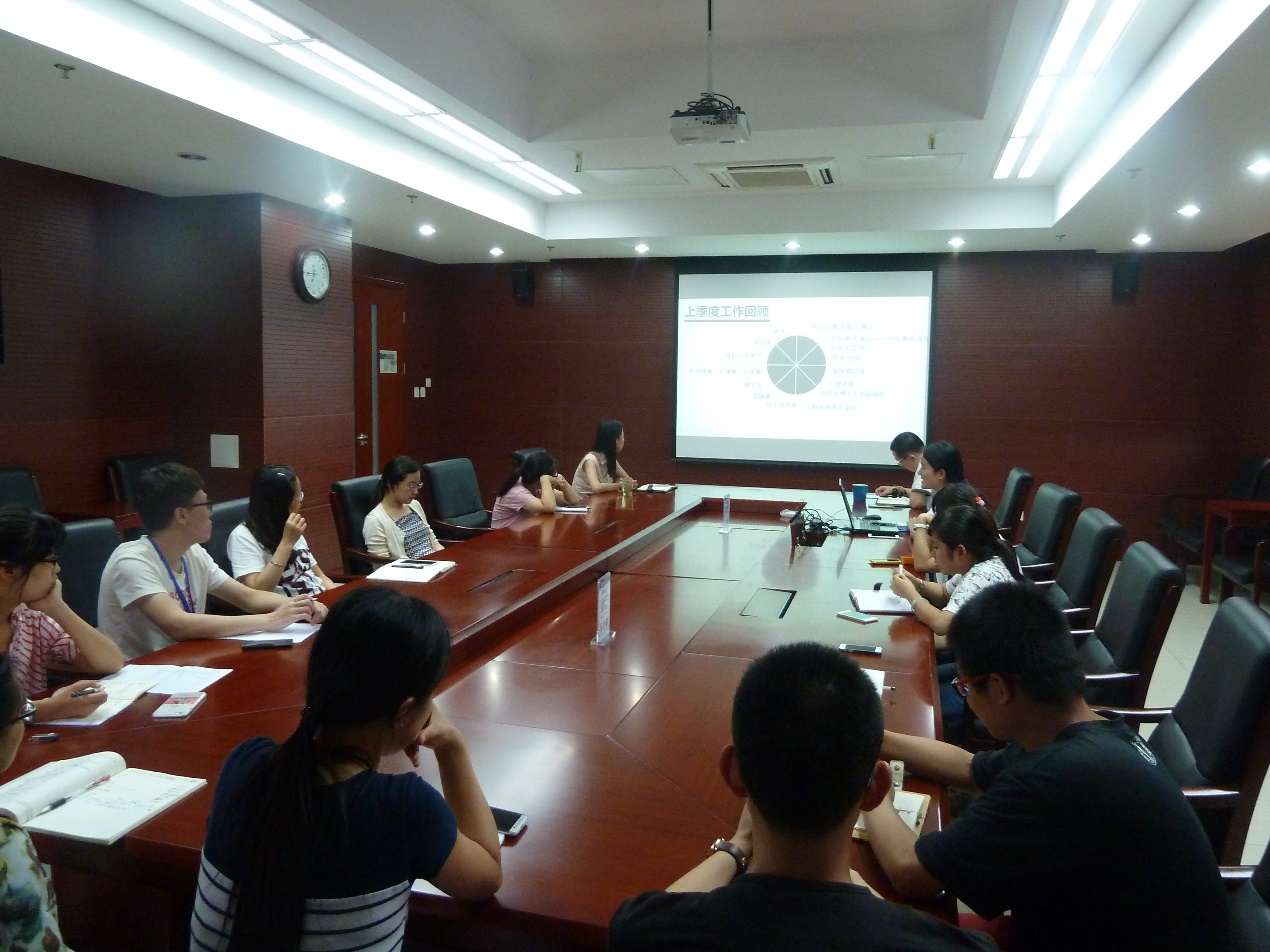 7月8日晚,北京基因組研究所研究生會2015年第二次全體會議在研究所1104會議室順利召開。本次會議由研究生會主席李從儒主持,研究生部老師陳著、劉明娟,研究生會主席團及各部部長、干事參加了會議。