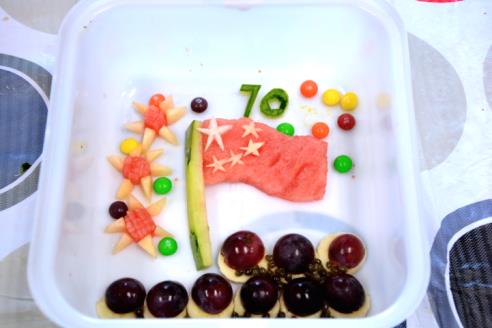 隨著小游戲接近尾聲,拼盤比賽正式開始,短暫的比賽時間內,各個隊絞盡腦汁,相互討論,想出了各種拼盤主題,或千奇百怪,或生動形象。各隊發揮隊員們獨特的想象力和團隊合作能力,用熱情洋溢、生動有趣的語言對各自代表隊的作品進行講解。