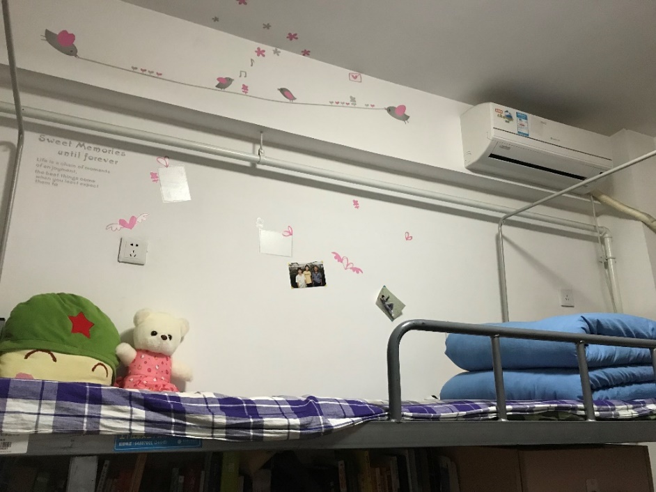 “有夢的天空才絢爛,有愛的宿舍更溫暖”,簡單的小裝飾與溫馨的合影,塑造家的氛圍