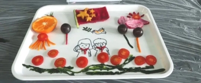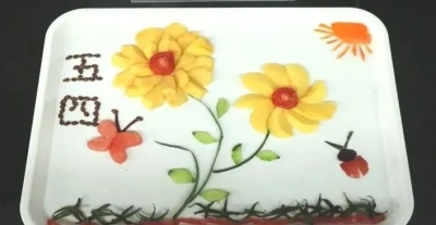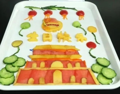 我們的主題是“不忘初心,砥礪前行”。新中國成立以來,尤其是改革開放以來,我們這一代人真真切切地見證了祖國的日益強大,不禁感慨萬千。這些故事還是要從一條游船說起,我們把香蕉做成游船,從游船開始一步一個腳印,日益成長。用玫瑰和燈籠獻禮祖國,祝愿祖國繁榮昌盛,繼續邁向更加輝煌的未來。 (張榮欽 申佩瑤 韓春旭)