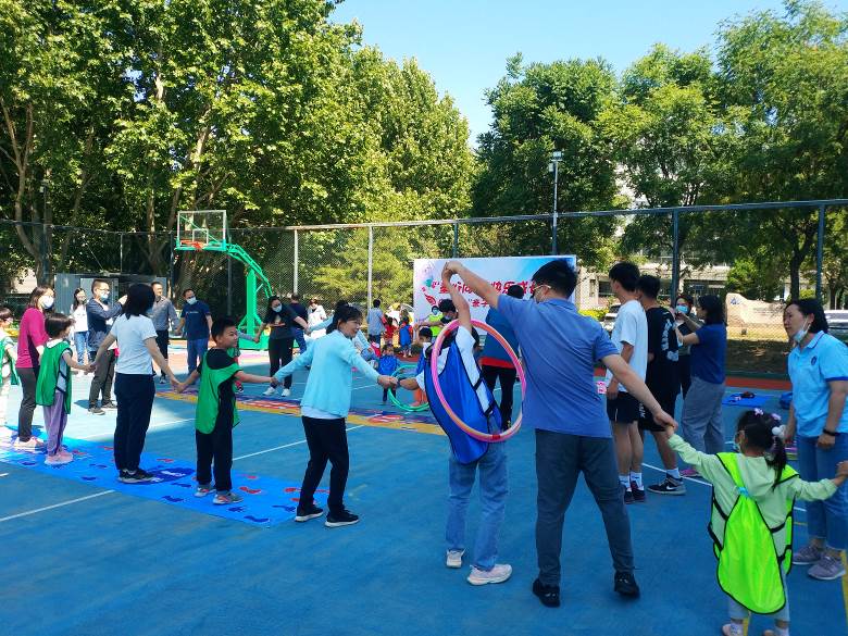 親子運動會以品德、智力、體育、愛國思想四個方面為主題開展活動。“能量傳遞”“手腳齊上陣”等競技類項目熱鬧有趣,籃球場上裝滿了大、小朋友們的歡聲笑語。
